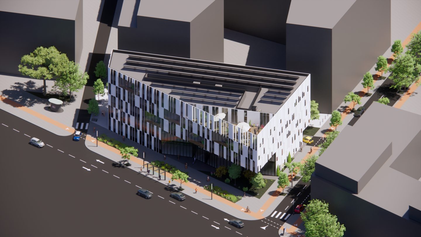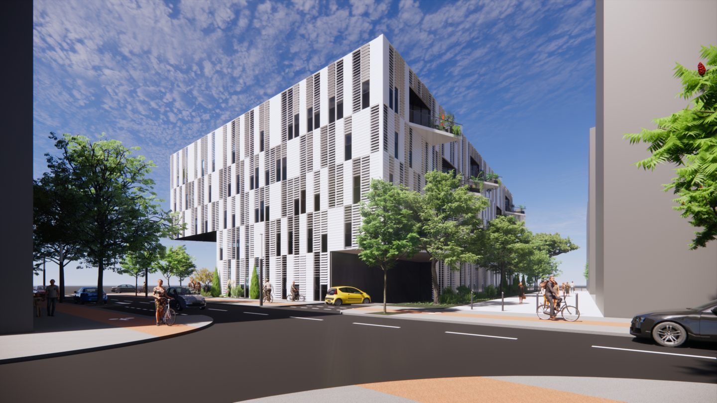 Entouré de quatre voies et formant un ilot à lui seul, le projet offre quatre façades distinctes, chacune avec une exposition cardinale spécifique (Nord, Est, Sud et Ouest) appelant un traitement architectural adapté et novateur, combinant performance environnementale, bien-être des utilisateurs, fonctionnalité et intégration urbaine.
