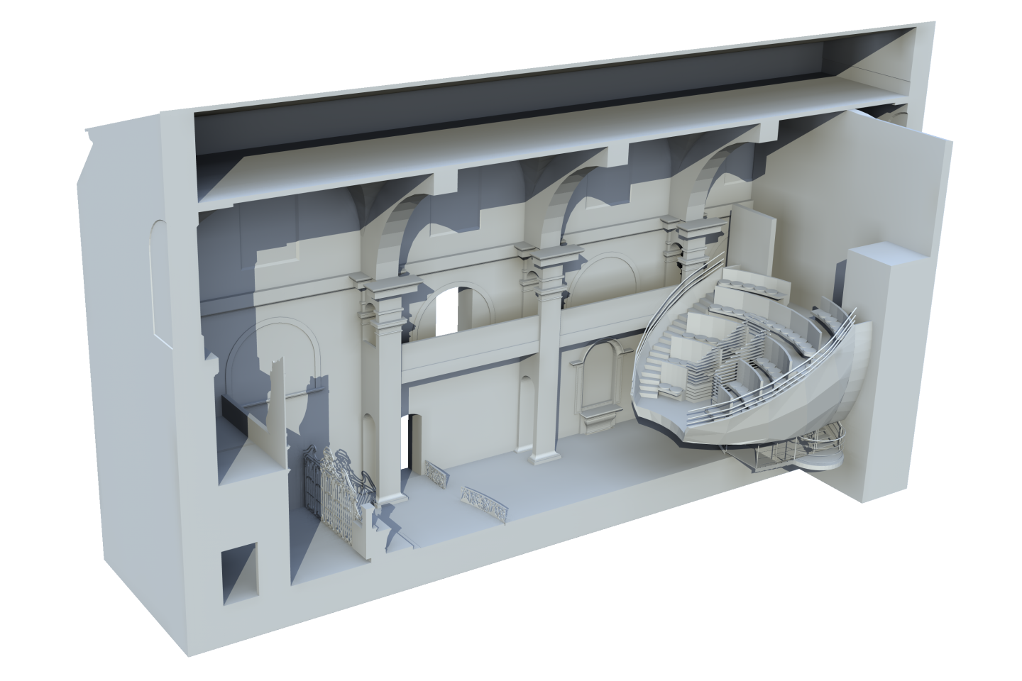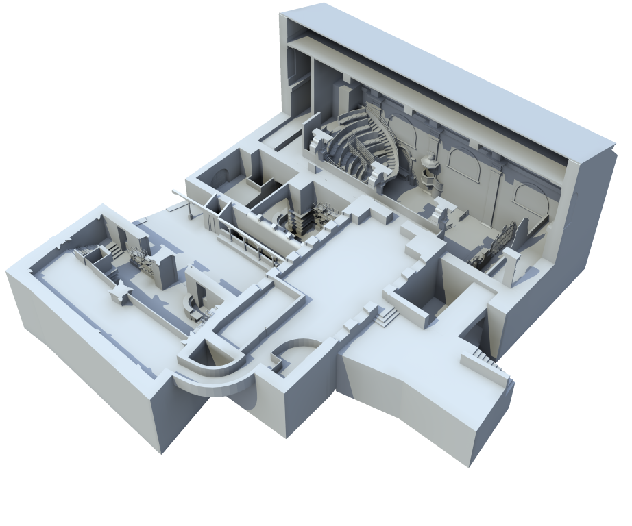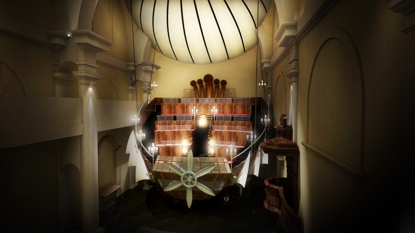 ZUO a été désigné lauréat d’un concours organisé par le Département de la Haute-Loire pour la réalisation d’un pavillon numérique au sein de l’ancienne Chapelle Saint Alexis située au PUY-EN VELAY. Quatre équipes de maîtrise d’oeuvre avaient été sélectionnées pour participer à ce concours, dont l’équipe menée par Wilemotte et Associés qui avait réalisé l’Hôtel du Département en 2001.Le projet de ZUO a été sélectionné car il était celui qui qui proposait le meilleur scénario scénographique tout en respectant et magnifiant l’Architecture historique du site. A nos yeux, la chapelle, la cour et la grande salle voutée sont les espaces majeurs du site. Nous avons donc choisi de construire notre projet autour de ces trois espaces et de les magnifier. Nous avons choisi de remettre les visiteurs à l’intérieur de la chapelle pour ne pas la réduire à une simple caméra obscure ne reflétant qu’un monde virtuel. En effet cet espace a été construit pour être parcouru, pour être vécu. Il impressionne, il interroge nos sens par son architecture et par l’atmosphère qui s’en dégage. Il nous semblait primordial de l’intégrer pleinement au show pour qu’elle retrouve une valeur d’usage. Nous y avons développé un parcours qui la fait découvrir de multiples façons pour que les visiteurs en ressentent toutes les qualités spatiales et architecturales.