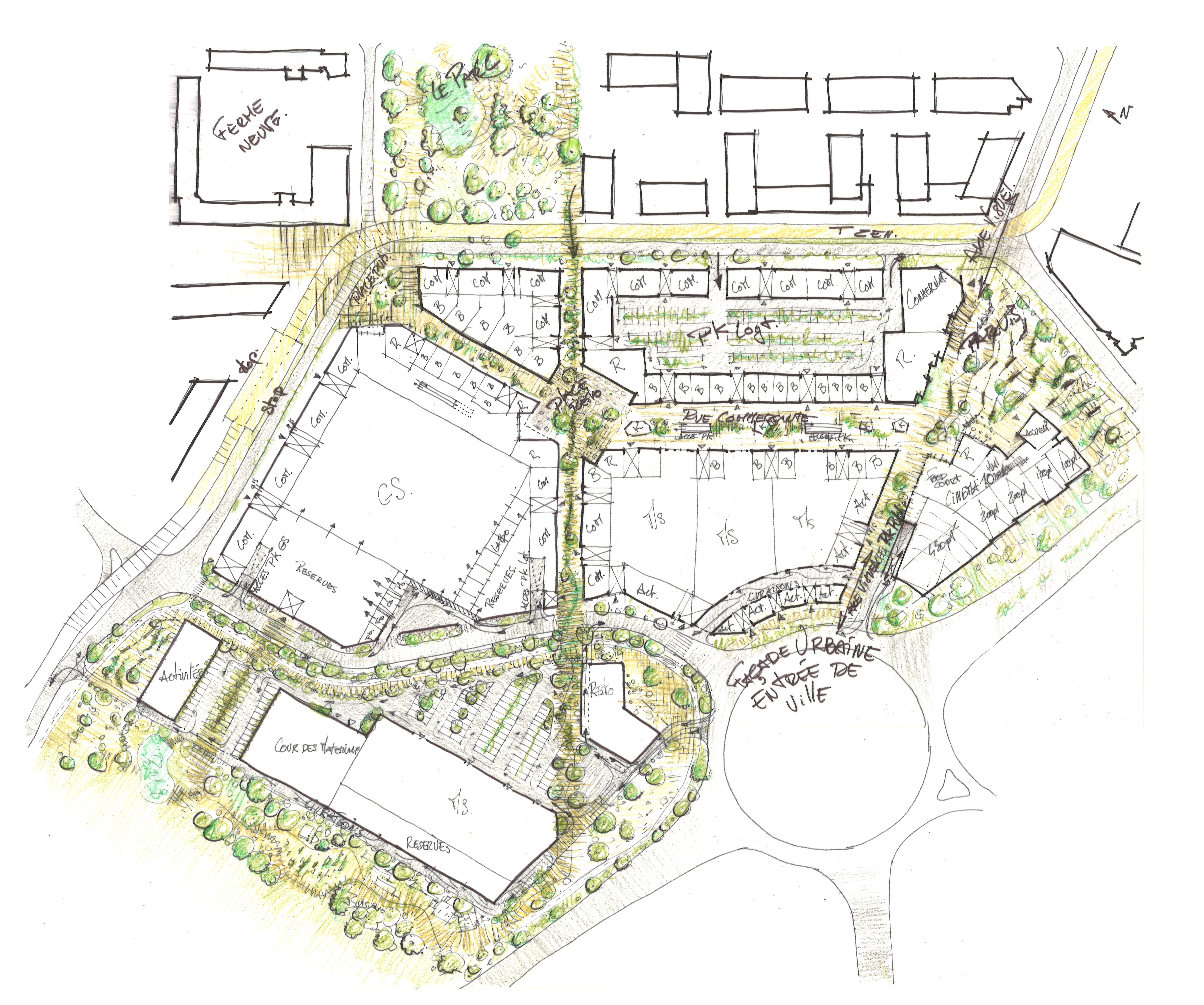 ZAC en centre ville logements, boutiques, commerces, activités, équipements publics, cinéma, restauration, grande et moyennes surfaces