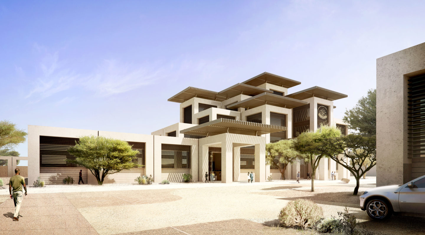 Le projet s’inspire de l’architecture sahélienne avec ses arches, ses volumes simples et ses ouvertures réduites. Les arches créent un dialogue avec les créneaux de la citadelle.