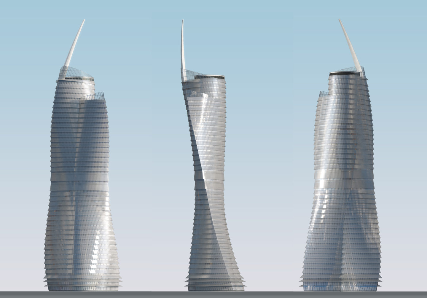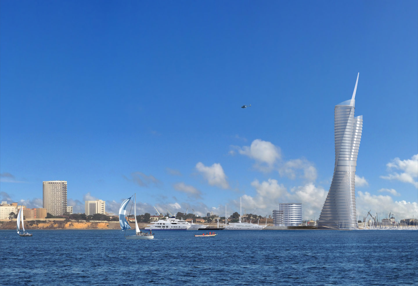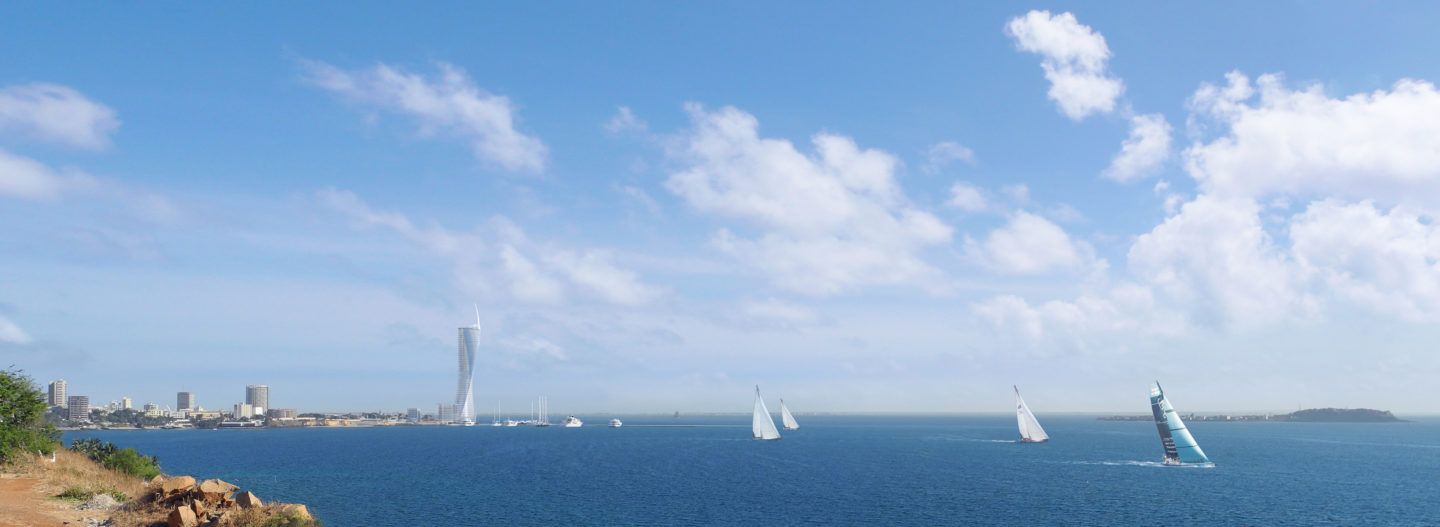 Symbolisant le rayonnement de Dakar et s’inspirant de la grâce féminine, la Tour de Gorée est composée de deux corps de bâtiment qui s’élèvent en effectuant une rotation pour former une robe face au vent.