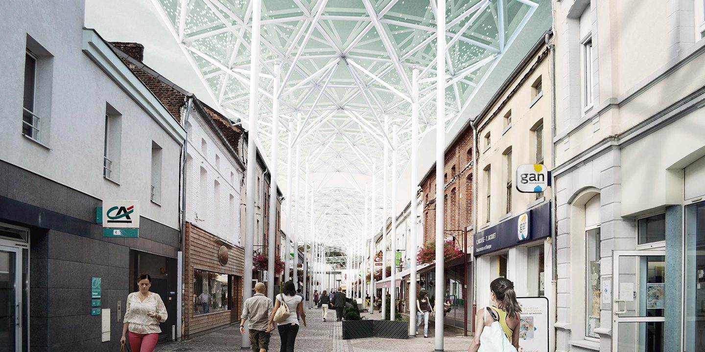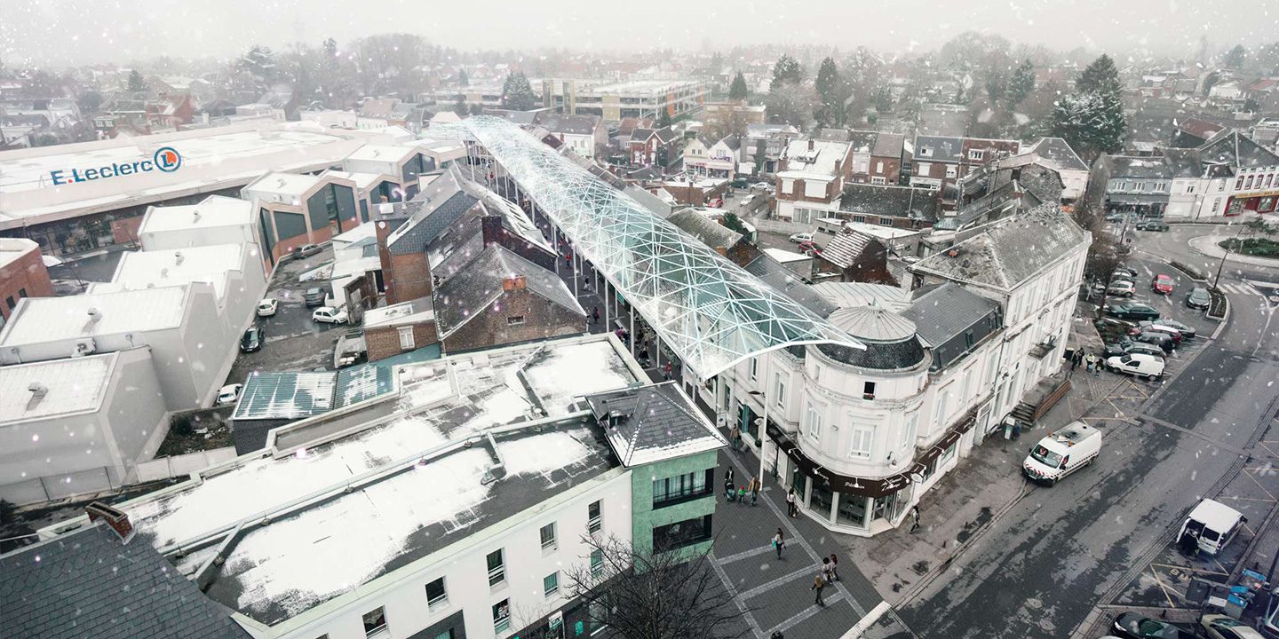 Occupying a large block in the heart of the town, the project developed for Aulnoye-Aymeries is a genuine example of urban “couture”. Indeed, it provides a highly contemporary example of a town being reconstructed on itself.