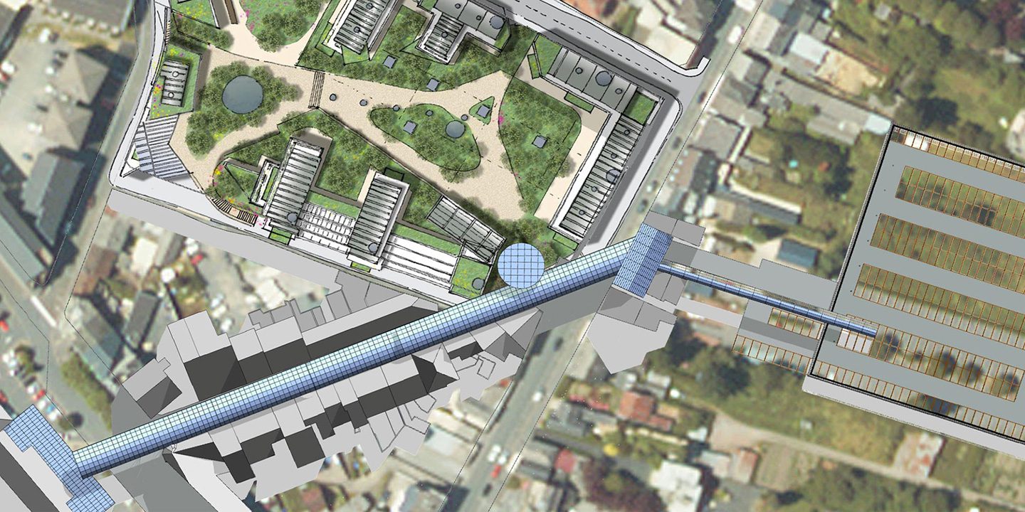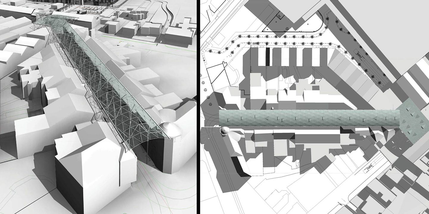The project includes a new, 700 place silo car park and the renovation of the existing pedestrian street. The idea is to construct a glass canopy for the street with a view to transforming it into a sort of covered outdoor passage with a strong, unified identity. The car park has been built; the covered street is an ongoing project.
