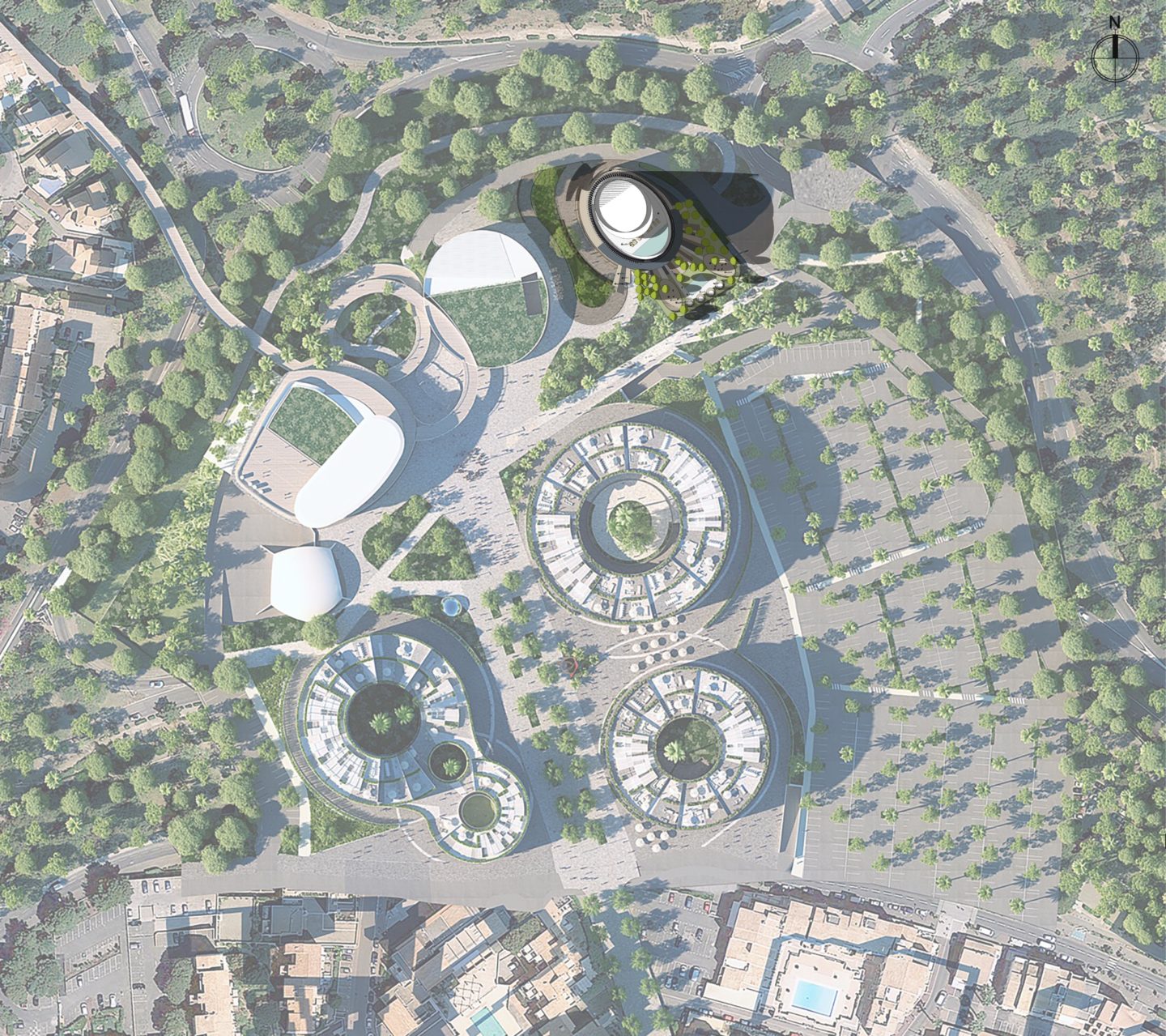 L’emprise de l’hôtel, sa forme et son gabarit sont définis au sein du projet d’aménagement global de Cœur d’Adge. Respectant scrupuleusement ces prescriptions urbaines, le projet d’hôtel présenté s’intègre tout naturellement dans le nouveau paysage urbain tout en courbes et en formes organiques.